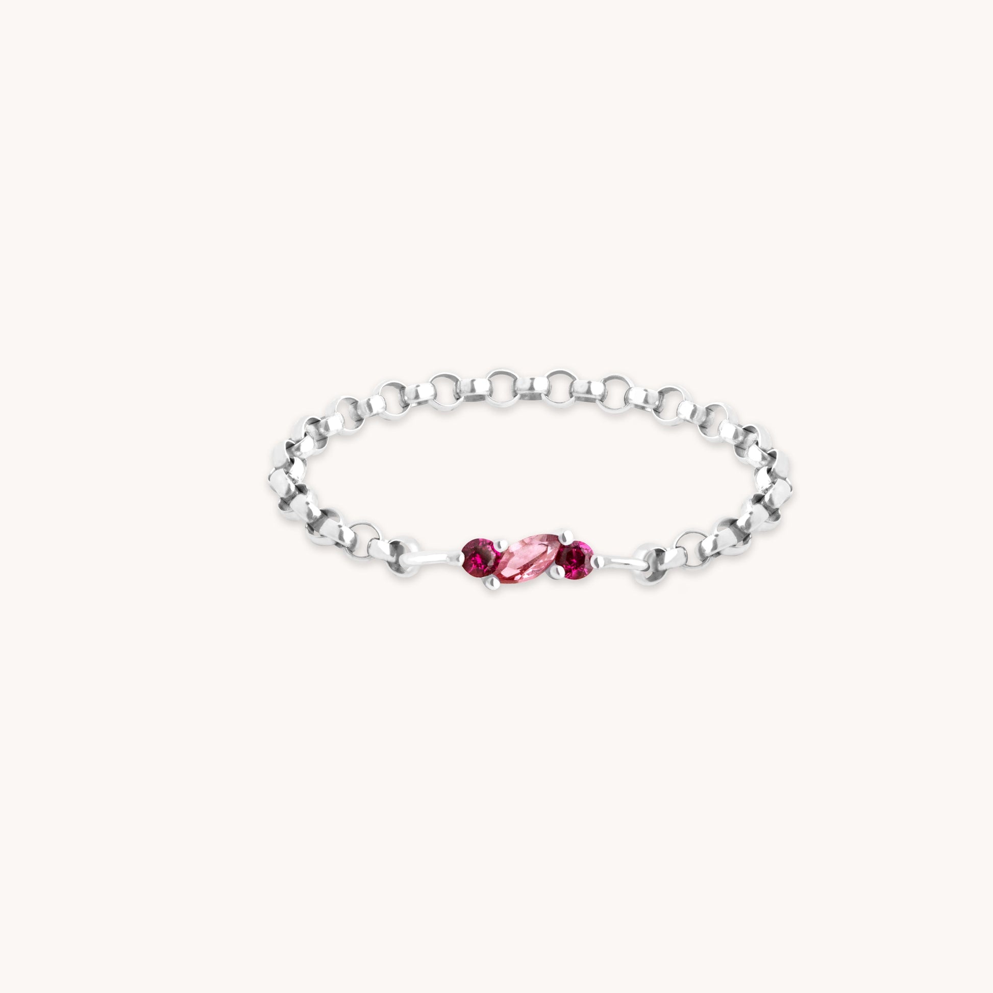 Różowy turmalinowy pierścionek z łańcuszkiem z litego białego złota